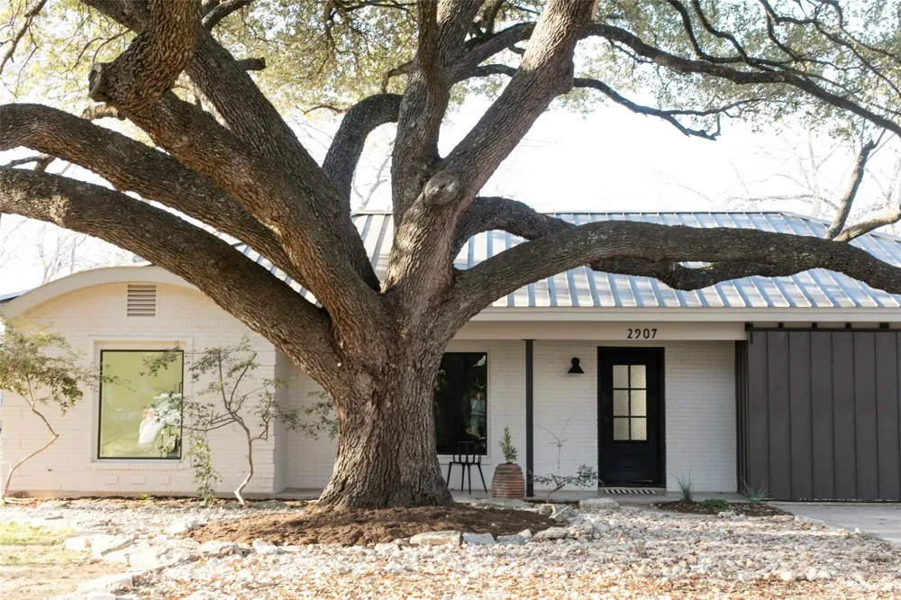 Beautifully re-imagined mid-century brick bungalow by Cary Paul Studios - just steps from Northwest Park in Allandale. The exterior is enhanced with new windows and exterior doors plus refreshed landscaping. A large storage shed is located in the corner of the spacious flat yard. Inside, nearly every major system has been replaced or upgraded, including warrantied HVAC with new ductwork, plumbing with new sewer and interior water lines, a tankless water heater, and updated electrical. A custom mudroom entry with terrazzo slab bench welcomes you home with style and function. The hall bath features a bespoke curved double vanity topped with marble, a nod to the home’s mid-century roots. The spacious primary suite offers an en suite bath and generous walk-in closet, while the fourth bedroom with vintage courthouse door works perfectly as an office or flex space. One of the secondary bedrooms includes an adorable 102 square foot loft (not counted in the listed square footage), ideal for play, storage, or a cozy reading nook. Other features include engineered hardwood floors, terrazzo tile and one of a kind vintage mid century light fixtures. The steel front door is a dutch door style - the glass panel can open on the inside for air flow. With abundant storage throughout and a single story layout, sophisticated finishes, and a prime location walkable to Northwest Park, this home delivers the best of Allandale living—modern comfort wrapped in classic charm.